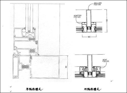 經(jīng)過長時(shí)間的研究,我們發(fā)現(xiàn)常用的設(shè)計(jì)方式有兩種,即單隔熱槽式和雙隔熱槽式。這兩種設(shè)計(jì)方法應(yīng)該按照具體的工程力學(xué)要求和裝配要求靈活應(yīng)用。
