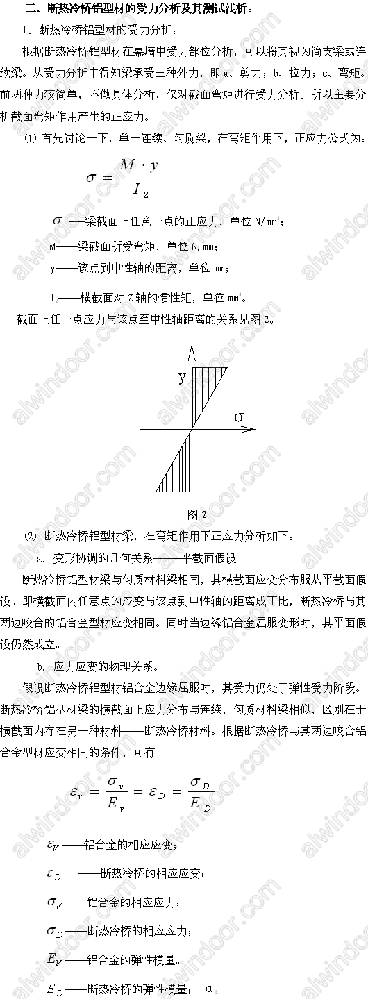 關鍵詞:斷熱冷橋鋁型材、斷熱冷橋、斷熱冷橋鋁型材梁、鋁合金、彎矩、正應力