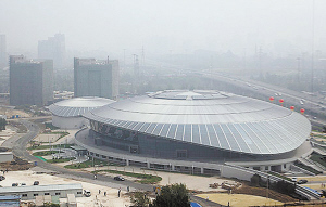比賽場館的屋蓋主體結構是一個內層直徑93米、外層直徑98米的