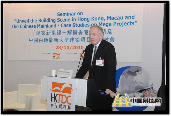 由香港貿(mào)發(fā)局主辦的2010香港國際建筑裝飾材料及五金展于10月27日在香港亞洲國際博覽中心隆重舉行。10月28日下午,“建筑新里程—結構香港、澳門及中國內(nèi)地最大型建筑項目”研討會在亞洲國際展覽館6號展覽館研討室舉行。參加研討會的講者有劉榮廣伍振民建筑師事務所(香港)有限公司助理董事亞歷山大魯殊先生、恒基兆業(yè)地產(chǎn)有限公司地產(chǎn)策劃(一)部總經(jīng)理鄧明庚先生、廣州市設計院副院長及總建筑師馬震聰先生,以及蘇國良大律師辦事處、香港執(zhí)業(yè)大律師蘇國良先生。