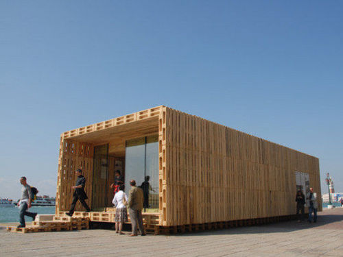 當人們第一次見到這些完全用貨運木頭托盤建造的漂亮房子時,頭腦里跳出來的第一個詞就是“棒極了”。這座名叫“Paletten Haus”的住宅是由兩名來自維也納大學的學生設計建造的,該建筑在2008年贏得歐洲高迪學生可持續建筑大賽設計獎。由于建筑材料是重復使用的模塊化托盤架,因而不但節省了能源,而且房屋的造價低廉低收入者完全能夠負擔得起。這種模式甚至可以為建筑材料匱乏的發展中國家提供一種新的安居選擇——事實上該住宅的設計者們眼下已經在南非幫助開發一種118.4美元/平方米廉價房。