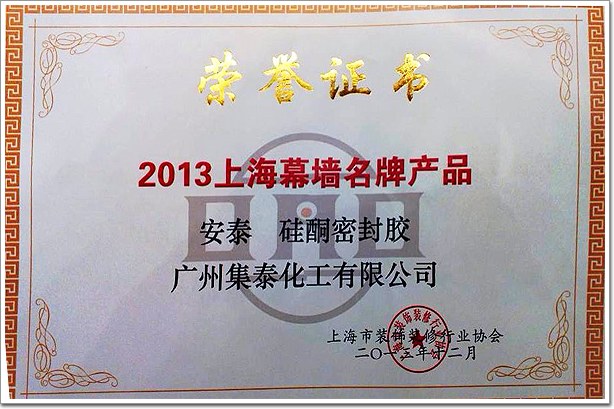 安泰硅酮密封膠榮獲“2013上海幕墻名牌產品”稱號