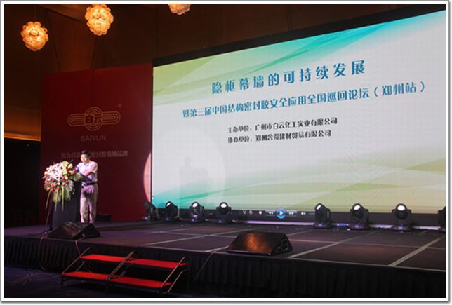 2014年6月27日,由廣州市白云化工實業有限公司主辦、鄭州舍得建材有限公司協辦的第三屆中國 “結構密封膠安全應用”全國巡回論壇首入古城鄭州,在鄭州建業艾美酒店盛大開幕。