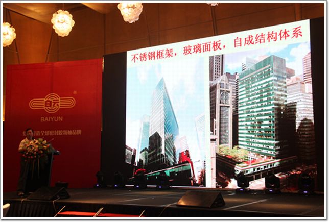 論壇伊始,廣州市白云化工實業有限公司繆明松(詞條“繆明松”由行業大百科提供)總經理致辭。繆總說,為什么白云化工可以代表中國“結構密封膠”召開論壇?因為“責任”。因為責任,白云化工堅持創新,翹楚行業近30年;因為責任,白云化工堅持執行,先后實施了666項管理、技術和工作標準,實現卓越品質;因為責任,白云化工堅持卓越,為客戶提供最可行的解決方案,致力打造全球密封膠領袖品牌;因為責任,白云化工傾心為一線工人量身打造了“密封膠施工技能培訓”;也是因為責任,白云化工開創全球首個結構密封膠50年自然暴曬極限測試。繆總引用老子名言“天下大事必作于細“,闡述了密封膠在建筑幕墻中的重要作用,并號召在場的城市建造者們同白云化工一起,重視細節,重視安全。