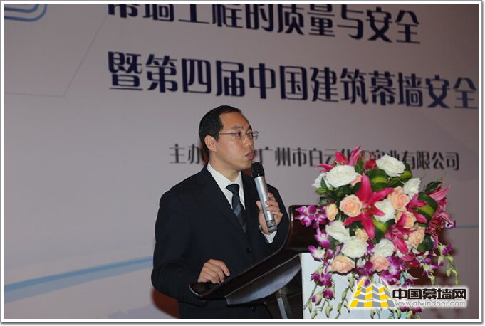 中國建筑金屬結構協會鋁門窗幕墻委員會專家、白云化工張冠琦技術總監發表《成就幕墻工程的美麗與安全——建筑密封膠的安全應用》演講