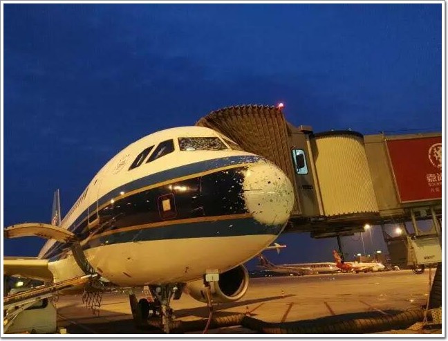 據中國南方航空官方微博消息,7月9日,南航B-9931飛機執行廣州至成都CZ3483航班任務,執飛機型為空客A320。飛機落地后,經機務工作人員航后檢查,飛機前部雷達整流罩和駕駛艙1號2號風擋玻璃(詞條“玻璃”由行業大百科提供)及部分機體結構出現損傷,初步判斷為飛行過程中遭遇冰雹沖擊。據介紹,7月9日,南航B-9931 飛機執行廣州至成都CZ3483航班任務,于18:05分從廣州白云機場起飛,19:51落地成都雙流機場,執飛機型為空客A320。飛機落地后,經機務工作人員航后檢查,飛機前部雷達整流罩和駕駛艙1號2號風擋玻璃及部分機體結構出現損傷,初步判斷為飛行過程中遭遇冰雹沖擊,飛機停場檢修,原定由該機執飛的CZ3484航班已改由其他飛機執行。