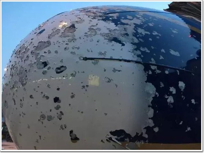 駕駛艙舷窗及雷達罩慘變麻子臉。