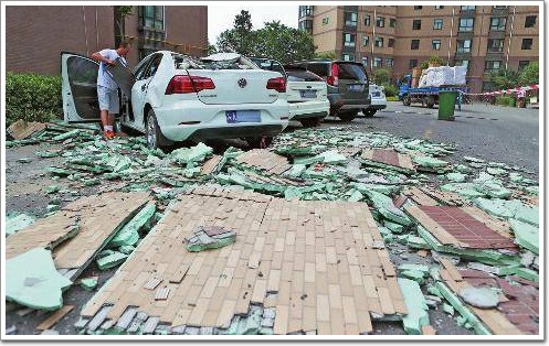 “轟隆!”一聲,緊接著有人喊“車被砸了!”7月24日晚8時20分,住在紅旗東路奇星御園小區9號樓的高先生,發現包括自家車在內的5輛轎車,被該小區10號樓外墻脫落的瓷片砸壞。