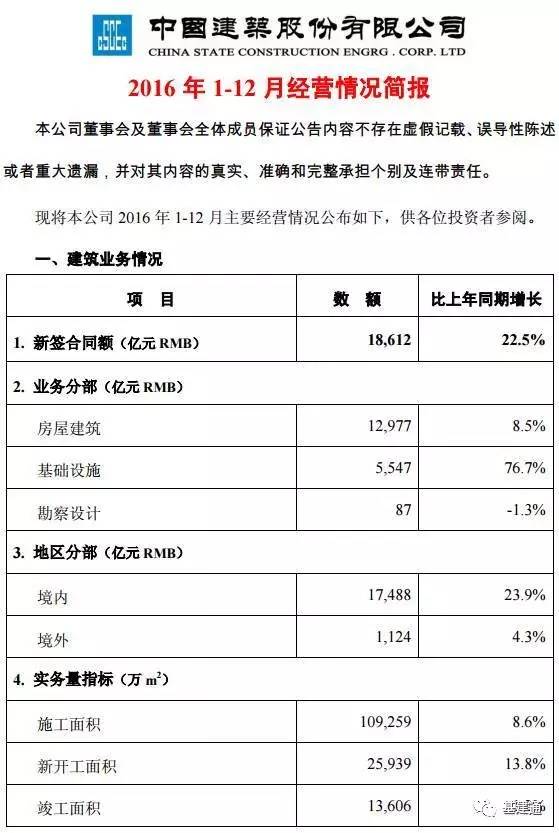 房建老大哥中國(guó)建筑,2016年依然強(qiáng)勢(shì),僅一項(xiàng)房屋建筑業(yè)務(wù)新簽合同額就達(dá)到12977億,可謂無(wú)可爭(zhēng)議的房建冠軍!