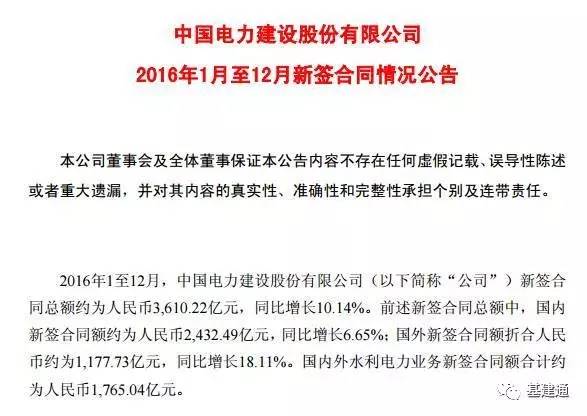 雖然中國(guó)電建2016年全年新簽合同額僅有3610.22億,相對(duì)其他央企來(lái)說(shuō),可能不值一提。但是在電力、水利建設(shè)領(lǐng)域還是一家獨(dú)大,無(wú)可匹敵!根據(jù)基建通大數(shù)據(jù)統(tǒng)計(jì),2016中標(biāo)的80%項(xiàng)目都是水利水電。