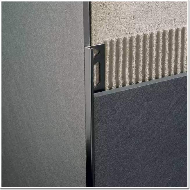 磚在陰角陽角收口時,通常采取45°角對拼的方式。這樣不僅容易崩邊、開裂,還存在一定的安全隱患。而圓潤的金屬收邊條不僅增強了裝飾效果,也一并消除了這些問題。