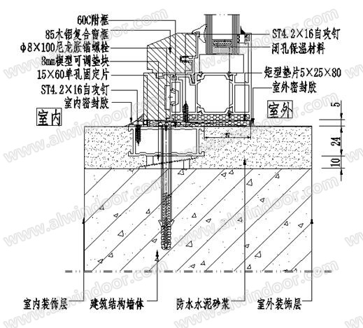 圖15 鋁合金窗直接固定安裝節點