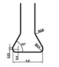 穿條式隔熱鋁型材行業(yè)推薦的鋁型材標(biāo)準(zhǔn)槽口尺寸如圖1所示。而對于標(biāo)準(zhǔn)的隔熱條(空腔型和一些異型隔熱條除外),其頭部尺寸基本上都是如圖2所示,這已經(jīng)是隔熱條行業(yè)的標(biāo)準(zhǔn)化產(chǎn)物。這樣就必然存在隔熱鋁型材槽口與隔熱條的配合問題。