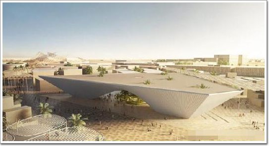 本次世博會選址于迪拜西南部,占地面積438公頃,由美國HOK建筑事務所完成總體規劃。