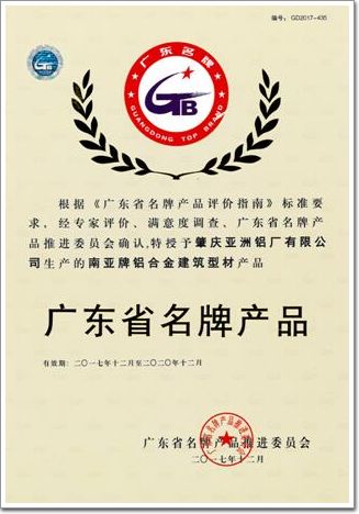 據了解,廣東省名牌產品的評選,是歷經各企業自愿申報、各地市審核把關、申報數據公示、企業現場審查、專家綜合評價等程序,最終由省質監局、省委宣傳部、省委政策研究室、省發展改革委、省經濟和信息化委、省科技廳、農業廳、商務廳等20多個部門(詞條“門”由行業大百科提供),以及社會團體和專家聯合組成的省名牌產品推進委員會全體會議審議確認,最終評選出來的結果。我公司的“南亞”牌鋁型材產品再續“廣東省名牌產品”桂冠,承蒙多年來亞鋁用戶喜愛、客戶滿意、市場信任、厚愛。實乃亞鋁自身的品牌過硬、實至名歸的結果。