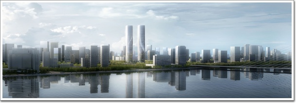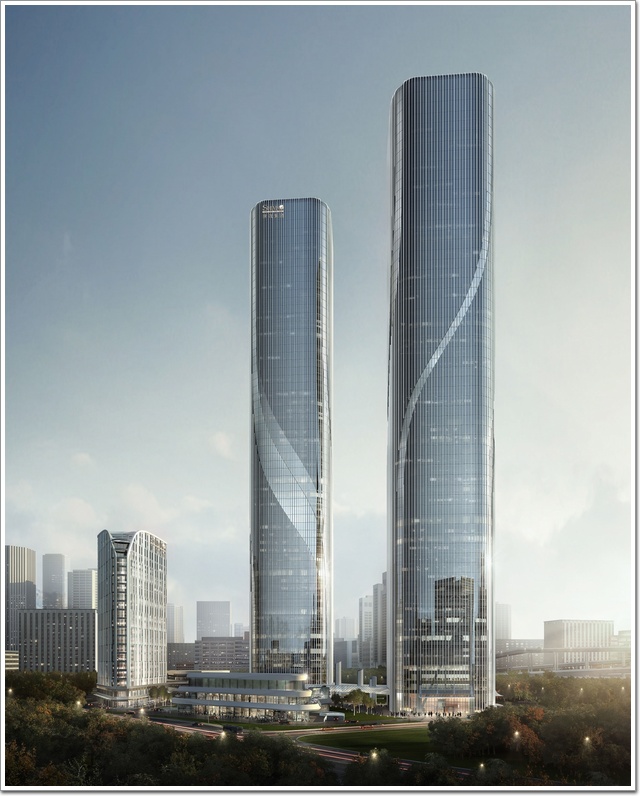 該項(xiàng)目由EID建筑事務(wù)所擔(dān)綱整體設(shè)計(jì),旨在為濱江區(qū)構(gòu)建一個(gè)全新的城市形象,同時(shí)在杭州主城區(qū)錢塘江畔構(gòu)建一個(gè)極具辨識(shí)度的標(biāo)志性門戶,項(xiàng)目要求從機(jī)場(chǎng)高速進(jìn)城,讓所有來(lái)杭州的人,都能第一眼看到這個(gè)地標(biāo),這是建“智慧之門”的初衷,兩幢高度為280米的雙塔設(shè)計(jì)完全滿足條件,“智慧之門”的建筑概念從城市意象切入,高層公寓和高層寫字樓以及多層配套副樓形成一組富于動(dòng)感的城市雕塑。