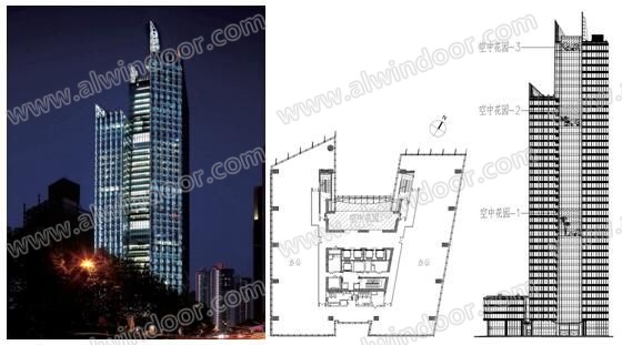 大樓在中間部位開辟了三處跨層的空中花園,分別位于: