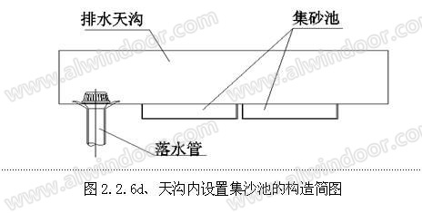 在這里所要重點介紹的是一種非常實用的清理積沙的辦法:在天溝底部,落水口的邊部設(shè)置集沙池(如圖2.2.6d)。
