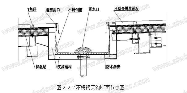 1) 排水天溝采用防腐性能好的金屬材料,不銹鋼板的厚度不應(yīng)小于2.5mm;