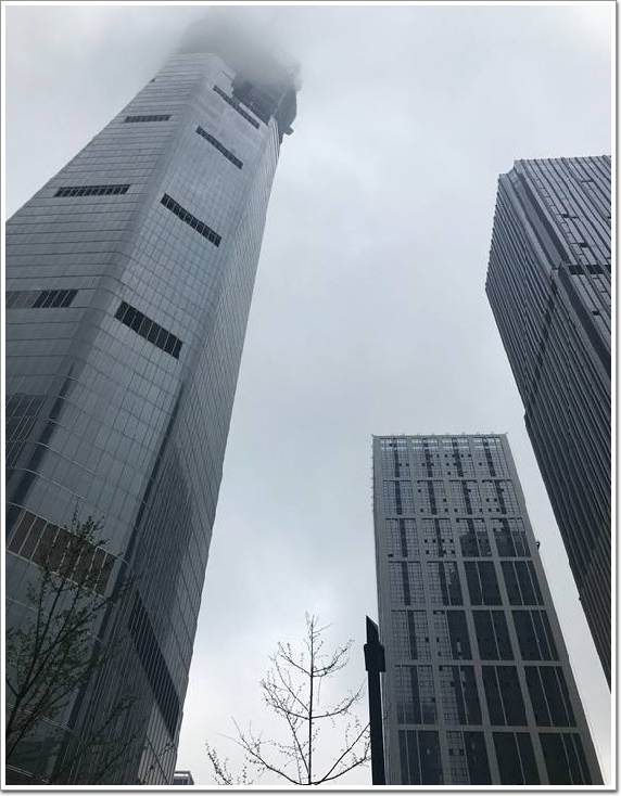 外立面方面,整座大廈均采用全玻璃幕墻打造,截至目前還有接近7層玻璃幕墻在安裝中,待幕墻工程封頂后,玻璃外衣就將正式成型。