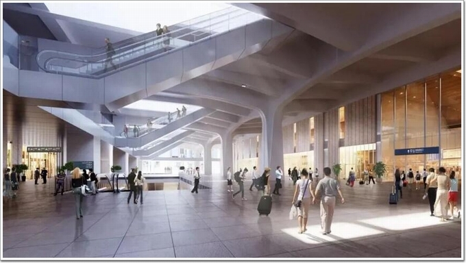 ▲雄安高鐵站建筑主題為“青蓮滴露”