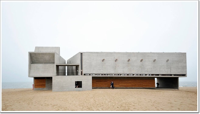 圖書館全名叫三聯書店海邊公益圖書館,地處河北秦皇島北戴河新區一處海邊的沙灘上,從最近的車站步行至圖書館至少需要半個小時,再走過幾百米的沙灘,這里沒有車道和捷徑,光著腳踏著沙,一步一腳印,走上幾百米才能抵達,但這段沙灘路卻頗具儀式感,有點像宗教信徒朝圣一般,需先經過些許磨難才能抵達那心中的圣地,當海浪出現的時候,圖書館就佇立在眼前了,恍若世界的盡頭。