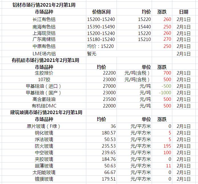 此原材料價格由中國幕墻網收集整理,僅供參考!