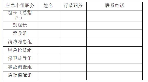 1、成立應急預案小組:(說明:組長一定要是建筑總承包單位的項目經理或安全負責人或技術負責人,幕墻分包單位的任何人都沒有這個資格擔任。)