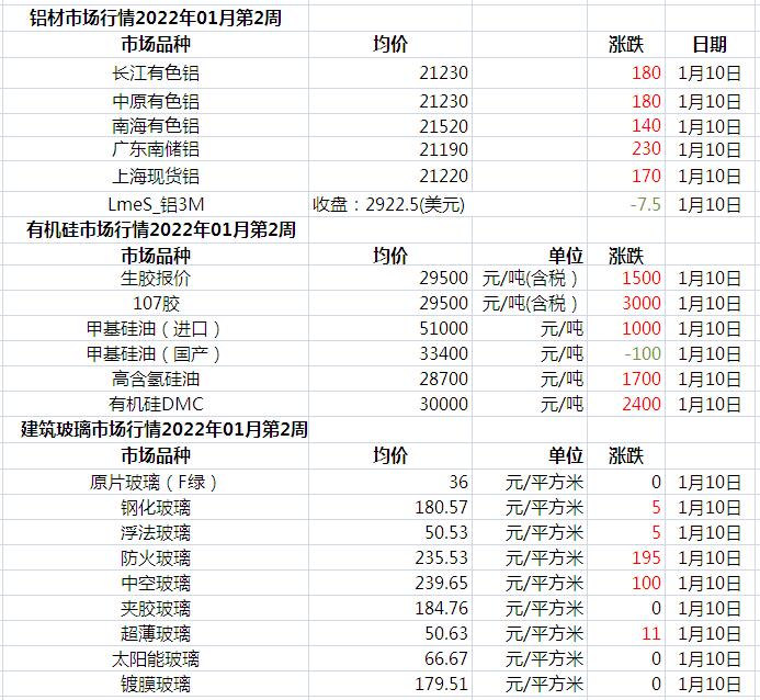 此原材料價格由中國幕墻網收集整理,僅供參考!