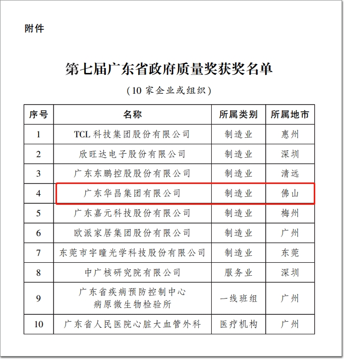 企業(yè)取得的成績(jī)也離不開(kāi)地方的培育。在此之前,華昌集團(tuán)曾獲得南海區(qū)政府質(zhì)量獎(jiǎng)及一線班組獎(jiǎng)、佛山市政府質(zhì)量獎(jiǎng),這是佛山市政府設(shè)立的最高質(zhì)量榮譽(yù)獎(jiǎng)。