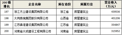中國建筑行業民營企業200強榜單!