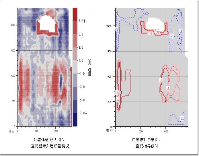 1.傳統的靠尺一般為2m,只能對外墻的平整度進行局部檢查,無法全面、有效的篩查出所有的不合格點位;