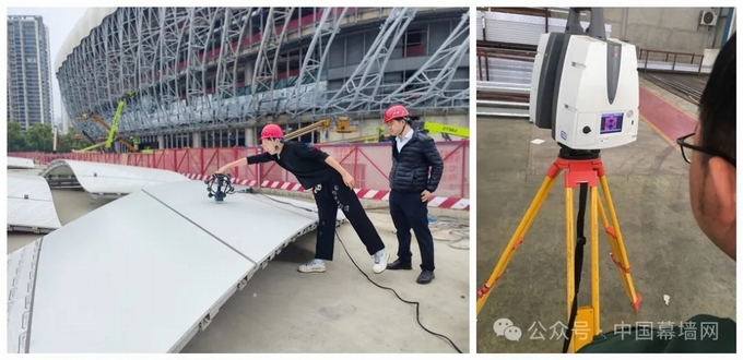 另外,團隊還充分運用3D掃描技術,將安裝位置精準定位,并且對每個分格板塊實現了出彩的安裝工藝,完美實現了“效果圖渲染水準”的建筑效果,將科技、靈動、時尚等融合到了體育場館項目當中。
