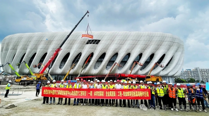 合攏儀式現場,作為業主方的深圳市體育中心運營管理有限公司、監理方上海建科工程咨詢有限公司,以及幕墻設計及施工單位——中建科工集團有限公司等參建企業代表,共同見證了幕墻板塊成功合攏的高光時刻!