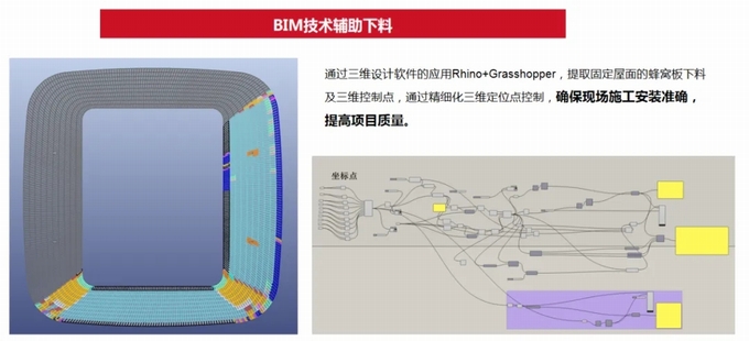 在深化設計階段,BIM的應用成為項目的主要亮點!中建科工幕墻團隊通過三維設計軟件的應用,實現復雜造型的精細化控制,確保項目質量、節省造價、提升工作效率。
