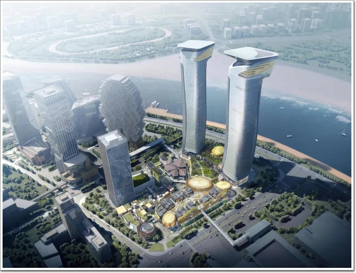 珠海橫琴總部大廈坐落于珠海橫琴島的顯要位置,與澳門隔河相望,集甲級辦公塔樓、商業零售、宴會、娛樂和休閑設施于一體,是標志性的“城市綜合體”和典型的“雙子塔”結構。建筑設計靈感來源于“雙龍戲珠”,江河幕墻負責T2北塔樓及其附屬裙樓幕墻工程。