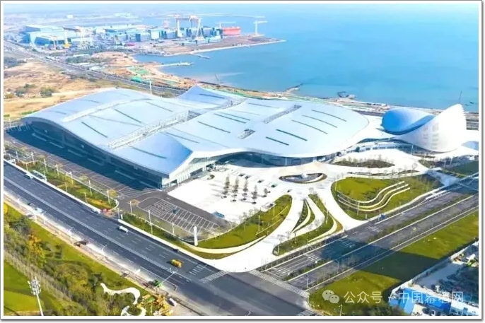 八角灣國際會展中心以“城岸云浪·海上銀貝”為設(shè)計(jì)理念,造型獨(dú)特,水波涌動,波浪形展館動感十足,曲線流暢飄逸,銀灰色玻璃幕墻顯得建筑大氣時尚,濱海風(fēng)情、海洋元素與會展元素天然相融,獨(dú)樹一幟。