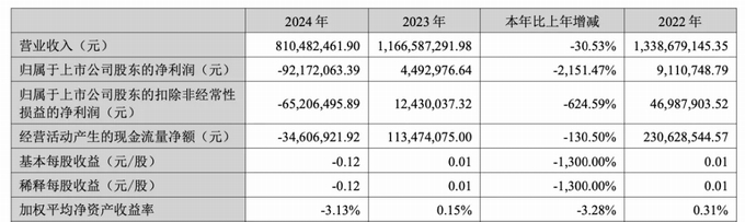 成都路橋(002628)近日發布2024年年報,實現營業收入8.10億元,同比下降30.53%;實現歸屬于上市公司股東的凈利潤-9,217.21萬元,同比下降2151.47%。