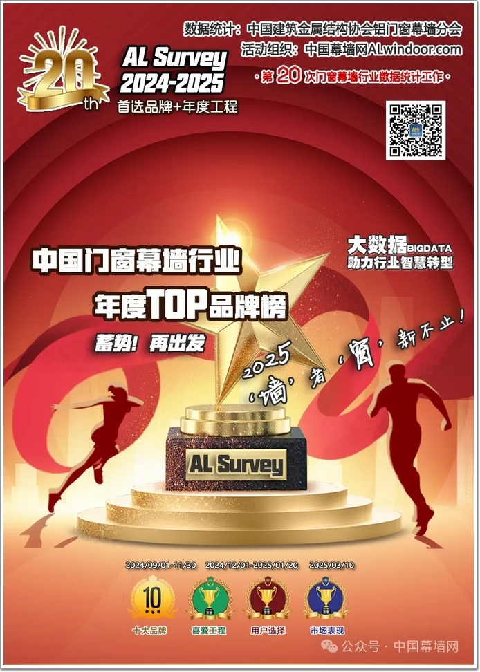 AL-Survey是由中國建筑金屬結構協會鋁門窗幕墻分會提供數據統計支撐,中國幕墻網ALwindoor.com主辦的門窗幕墻行業年度“工程+門窗+材料”品牌饕餮盛宴。