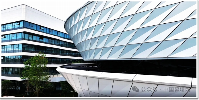 成都簡州新城智能網聯項目,其幕墻外立面設計現代簡約,通過三角擬合組成雙曲面(詞條“曲面”由行業大百科提供)形體,賦予建筑外立面更多肌理和視覺沖擊力。